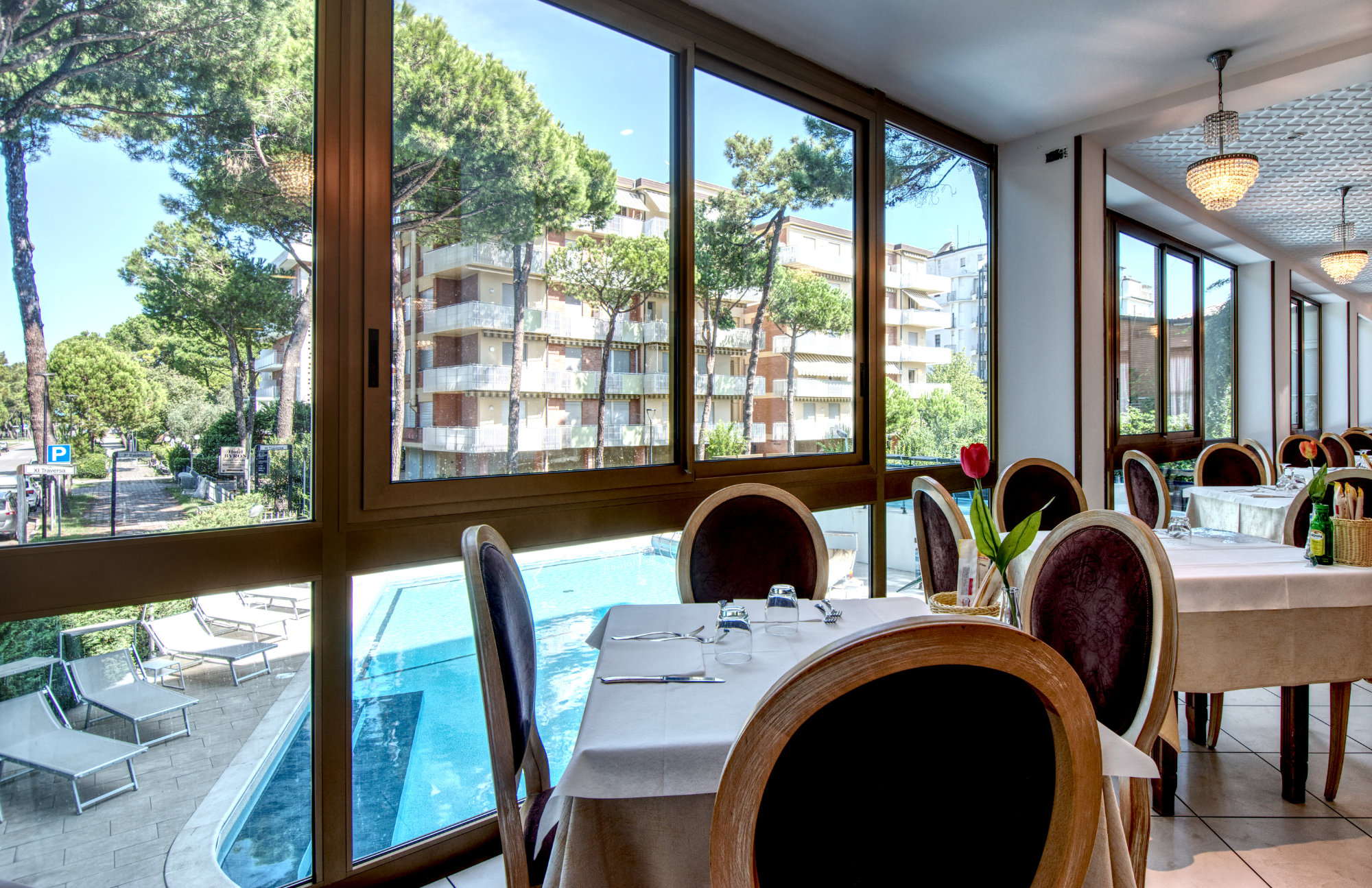 A tavola, la vista sull’Anello del Pino o sulla piscina accompagna ogni istante, avvolgendo i momenti in un’atmosfera calma e luminosa.